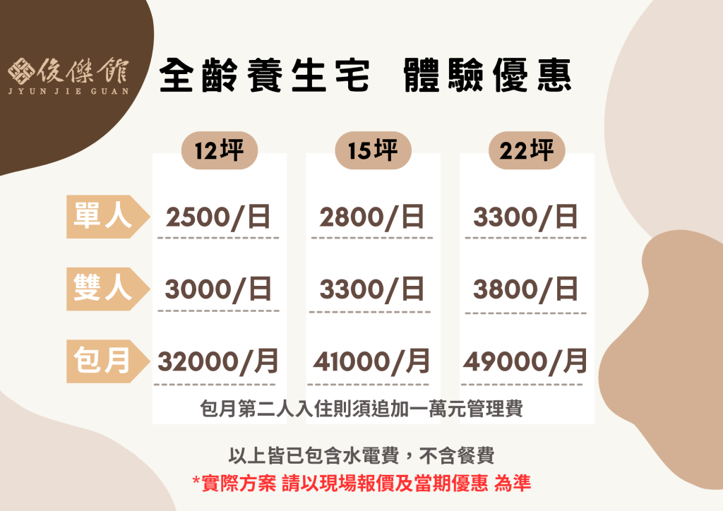 可以一同入住俊傑館,陪同入住者會另計為一位住戶,並可依您的需求更改床型配置(單人床、雙人床)。